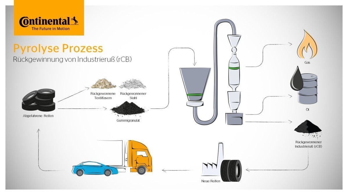 So soll mittelfristig unter anderem qualitativ besonders hochwertiger Industrieruß (rCB) für die Reifenproduktion von Continental gewonnen werden. Ruß ist ein wichtiger Bestandteil vieler Reifenmischungen. Durch die Verwendung von hochwertigem Ruß kann die Leistungsfähigkeit von Reifen gezielt verbessert werden. Bereits ab März 2022 wird die Reifen-Entsorgungsgesellschaft (REG), eine Tochtergesellschaft von Continental, mit der Lieferung von Altreifen an Pyrum beginnen. Langfristig wird ein Kreislaufwirtschaftskonzept für das Recycling von Altreifen angestrebt. Seit dem Börsengang von Pyrum im Jahr 2021 ist Continental bereits mit einer strategischen Minderheitsbeteiligung an dem Unternehmen beteiligt.