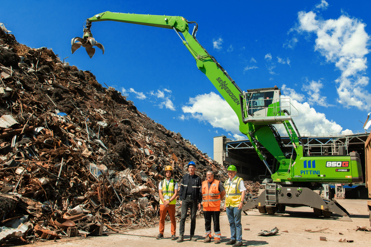 01.12.2025Im italienischen Osoppo setzt die Pittini Gruppe auf die neue G-Serie von SENNEBOGEN: Der 850 G ergänzt seit April 2025 den Fuhrpark des Stahlwerks Ferriere Nord. Als Hersteller von Betonstahl und Drahtprodukten ist Pittini auf leistungsstarke Technik angewiesen – insbesondere in der Schrottlogistik, wo täglich mehrere hundert Tonnen bewegt werden müssen. Die Wahl fiel auf eine individuell konfigurierte Maschine der neuesten Generation, geliefert vom langjährigen SENNEBOGEN Vertriebspartner Cesaro Mac Import.