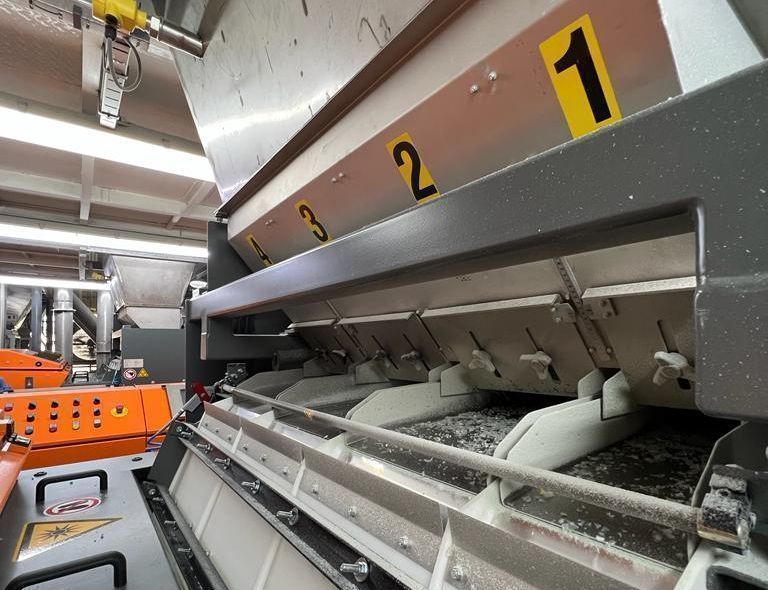 Nach der Vorsortierphase führen drei AUTOSORT™ FLAKE-Maschinen einen letzten Reinigungsschritt durch und sortieren Kunststoff-Flakes sowohl nach Farbe als auch nach Materialtyp
