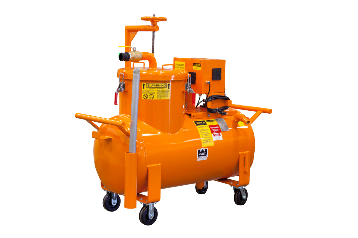 Eriez offers the widest selection of sump cleaners in the industry. Solutions range from the inexpensive drum top cleaner to the industry’s widely recognized sump cleaners with single or twin-compartment configurations. Push-around, tow-around or truck-mounted units are also available. Power supply configurations range from electric 120 v single phase or 230/460 v 3 phase to LP gas and air venturi units, so there is a power option for almost any application. There is also a 50-gallon (189,27 l) continuous discharge unit for conducting quick cleanouts while not shutting down production.